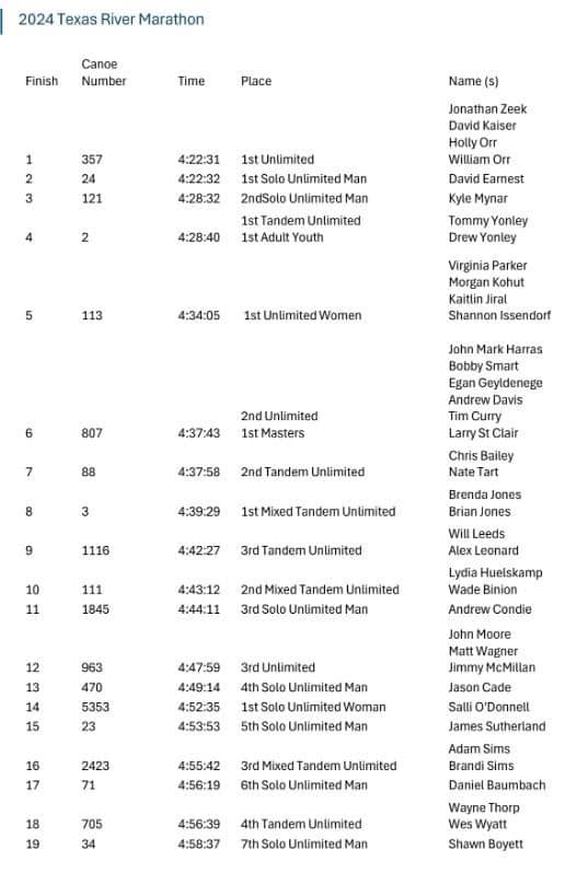 | Texas River Marathon 2024 |